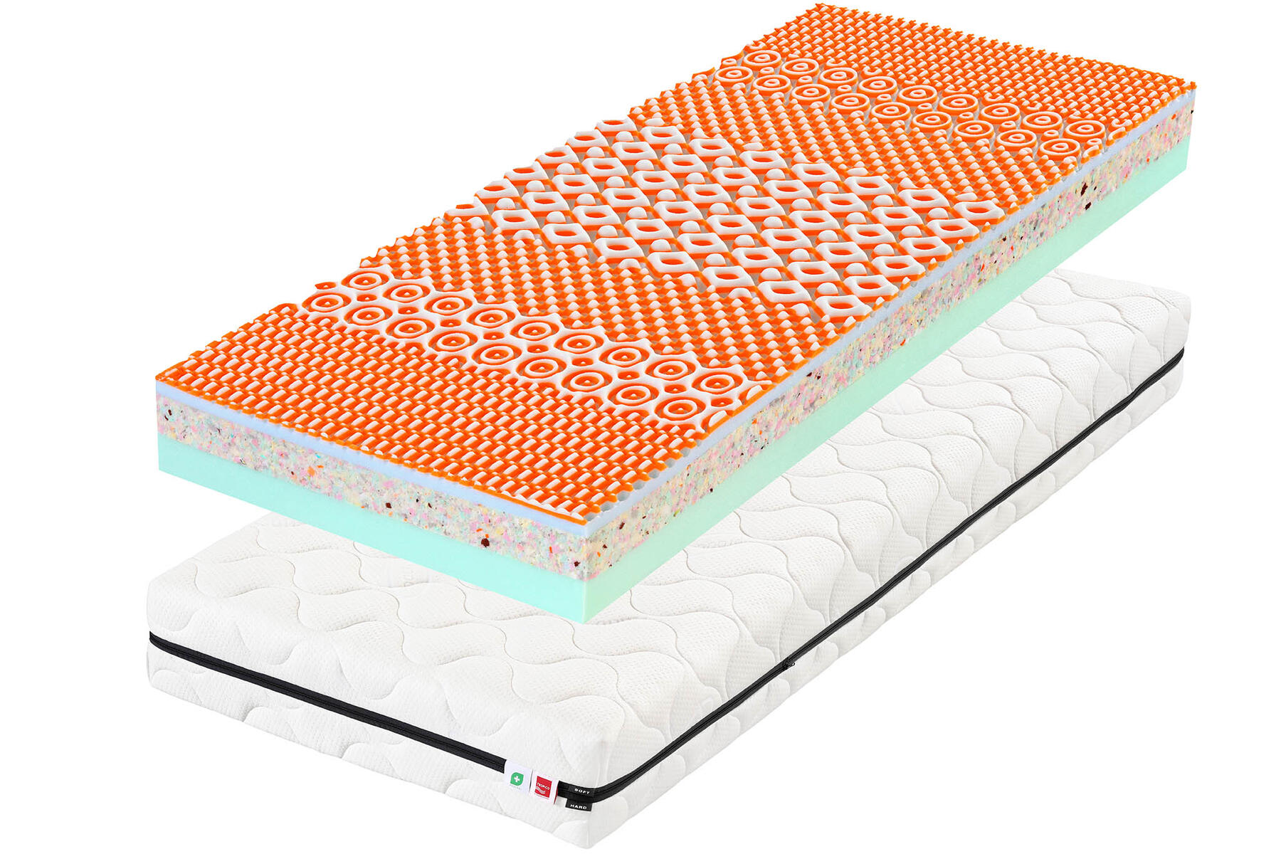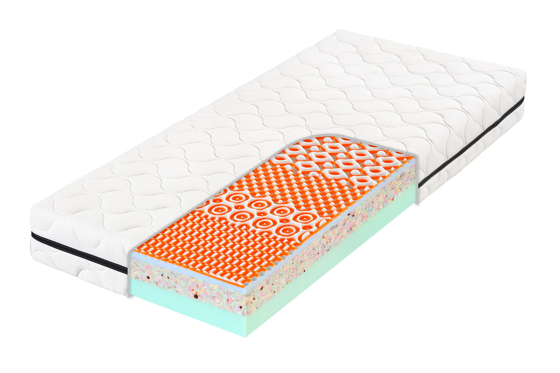 Je tuhá sendvičová matrace z pružných pěn Flexifoam s paměťovou pěnou pro maximální pohodlí a odlehčení kloubů a svalů. Matrace je chráněna pratelným dvojdílným, antibakteriálním. Nadchne všechny, kteří chtějí omezit noční pocení a výskyt roztočů. Český výrobek.