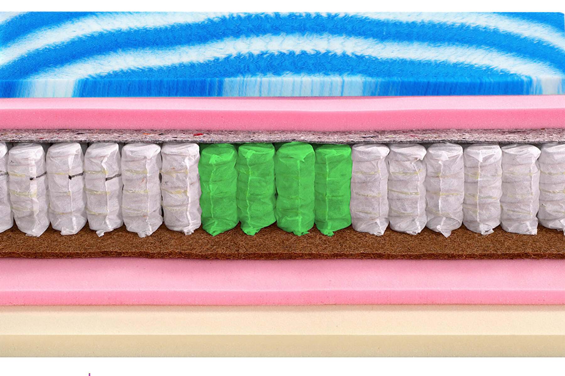 · Kokosová deska. Roznášecí deska o výšce 1 cm z lisovaného kokosového vlákna dodává matraci tuhost, odolnost a stabilitu.