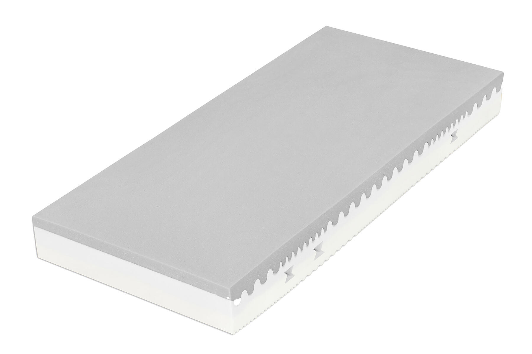 · Studená pěna (strana hard). Tužší strana matrace ze studené pěny střední objemové hmotnosti a velmi vysoké odrazové pružnosti zajišťuje pevnost, nosnost, odolnost