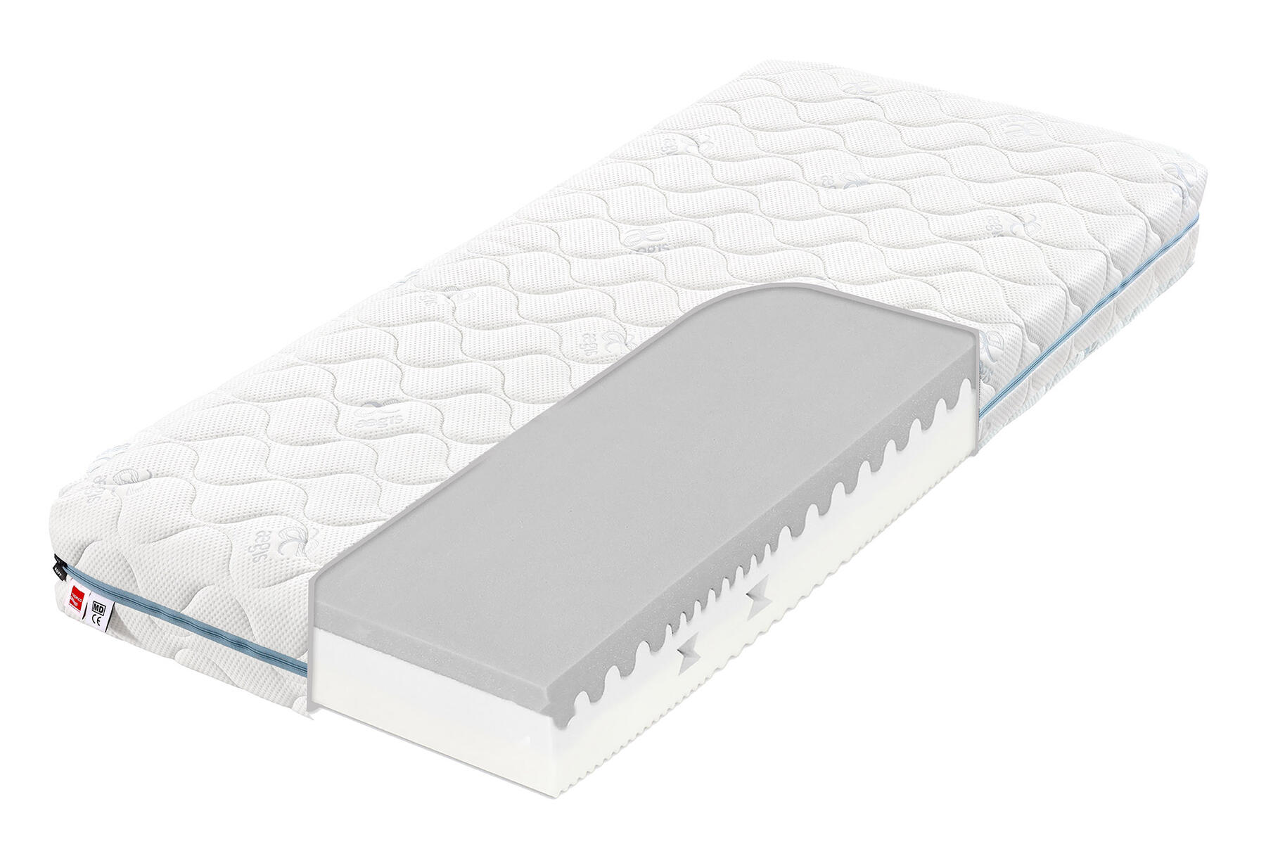 Super pružná a odolná ortopedická matrace bez lepidel. Vzdušný spoj, vynikající pěny se zónovou konstrukcí, rozdílnou tuhostí stran a ramenních zón předurčují matraci pro široké použití od dětí až po seniory, včetně náročnějších spáčů. Studená a hybridní pěna nejvyšší kvality = to nejlepší z pružných pěn v 1 matraci. Špičkový antibakteriální a protiroztočový pratelný potah s přírodními vlákny. Vyrobeno v Krkonoších.