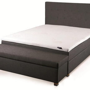 Čalouněná postel v lesklé šedohnědém provedení bude krásným doplňkem pro vaši ložnici. Postel je složena z jedné matrace, která je doplněna vrchní matrací (topper), která vám zajistí další variantu lehacího pohodlí. Topper není součástí postele. Je možné přikoupit variantu s možností Topperu Comfort 6 Punto, který je detailním doladěním celého spánkového systému kontinentální postele.
