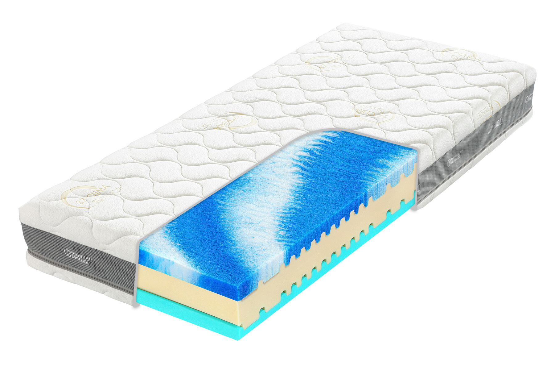 - GelTouch hybridní pěna (strana soft). Spojuje hebkost latexu s dokonalou distribucí tlaku gelových matrací. Vysoce prodyšná, napomáhá správné termoregulaci.