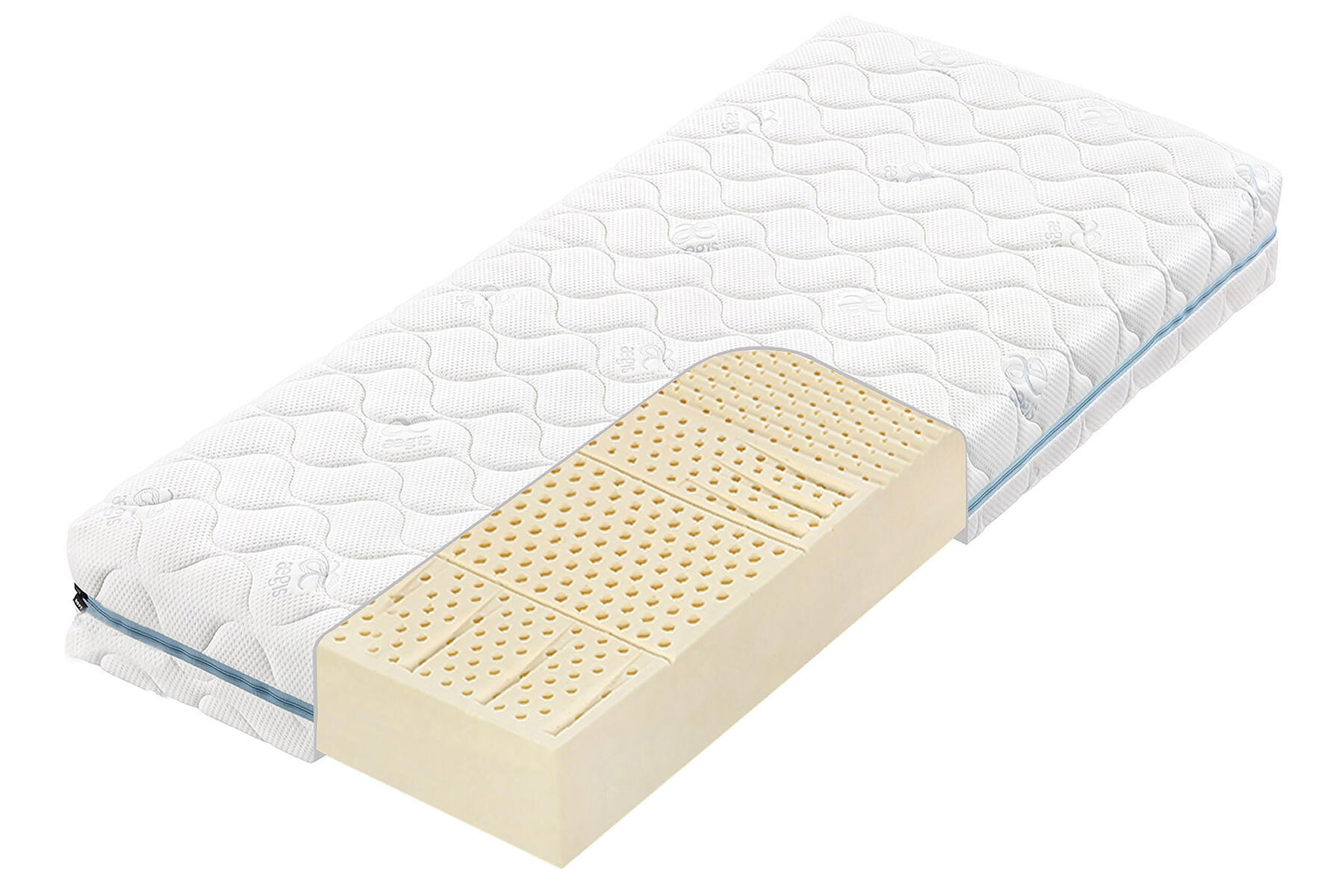 - LATEX - téměř nezničitelné ortopedické jádro z jednoho kusu latexu s objemovou hmotností 65 kg/m3. Díky perforacím má 7 anatomických zón a je prodyšné.