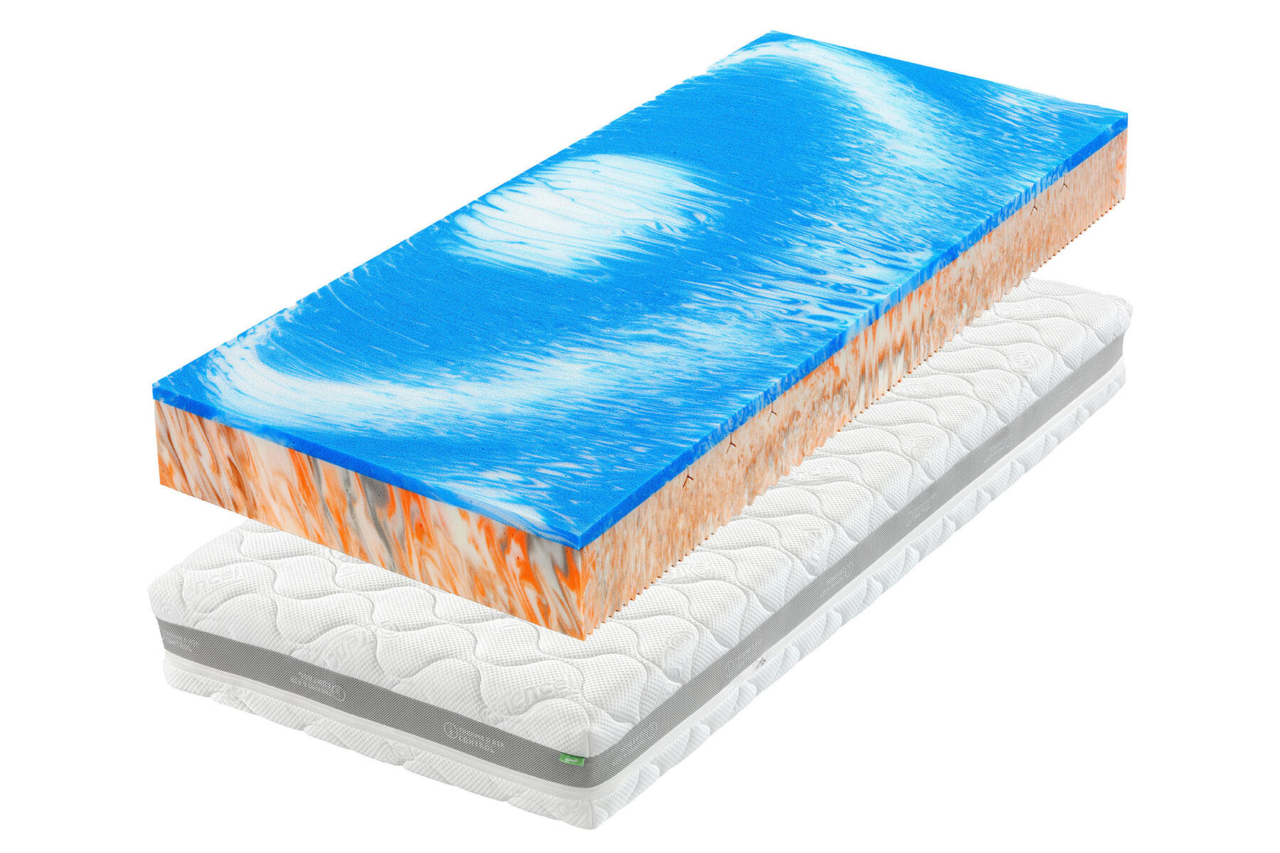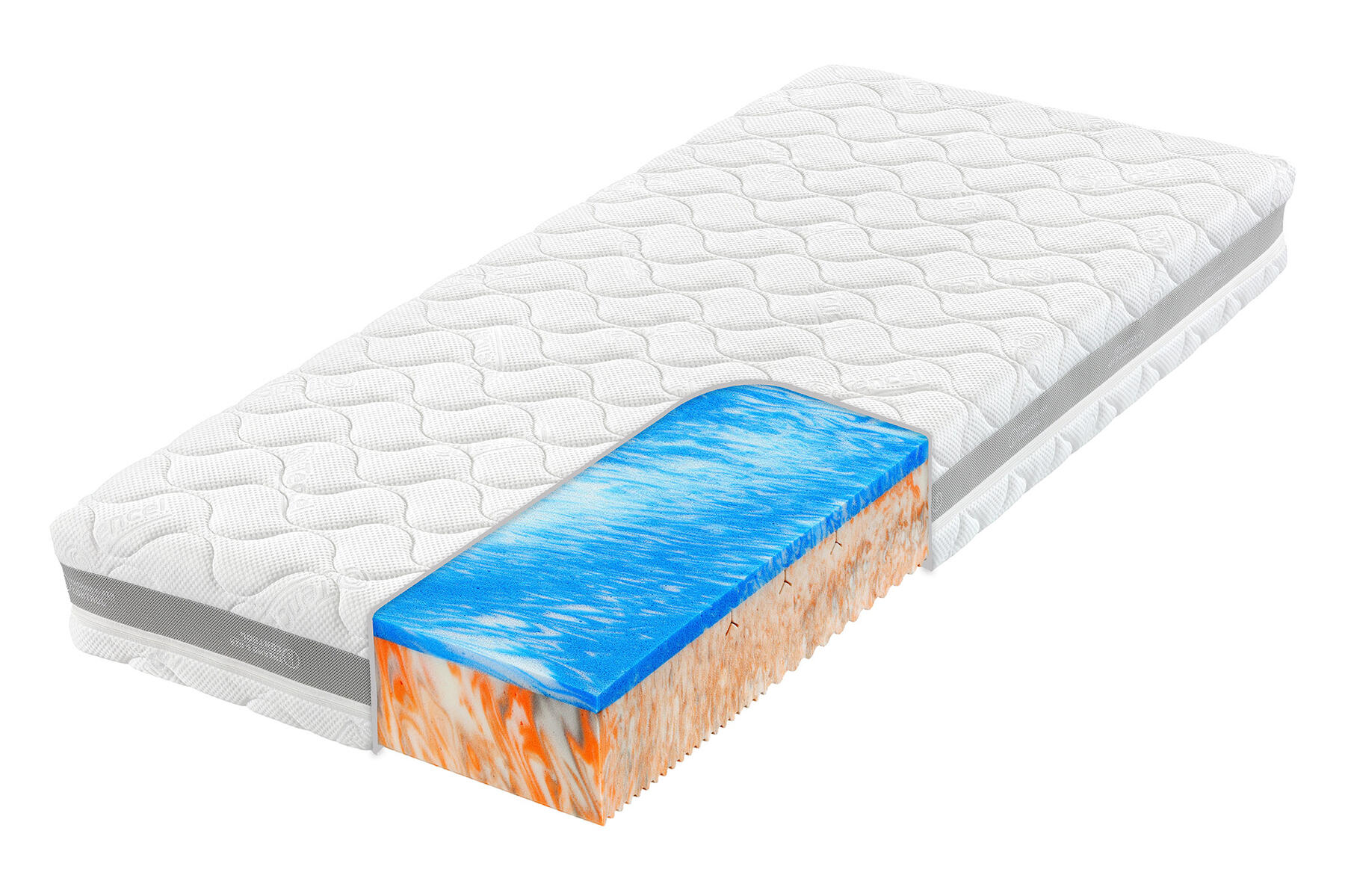 Díky gelové složce matrace lépe odvádí teplo a poskytuje svěží pocit po celou noc. Pěna s gelovým efektem, která se skvěle přizpůsobí tvaru těla.