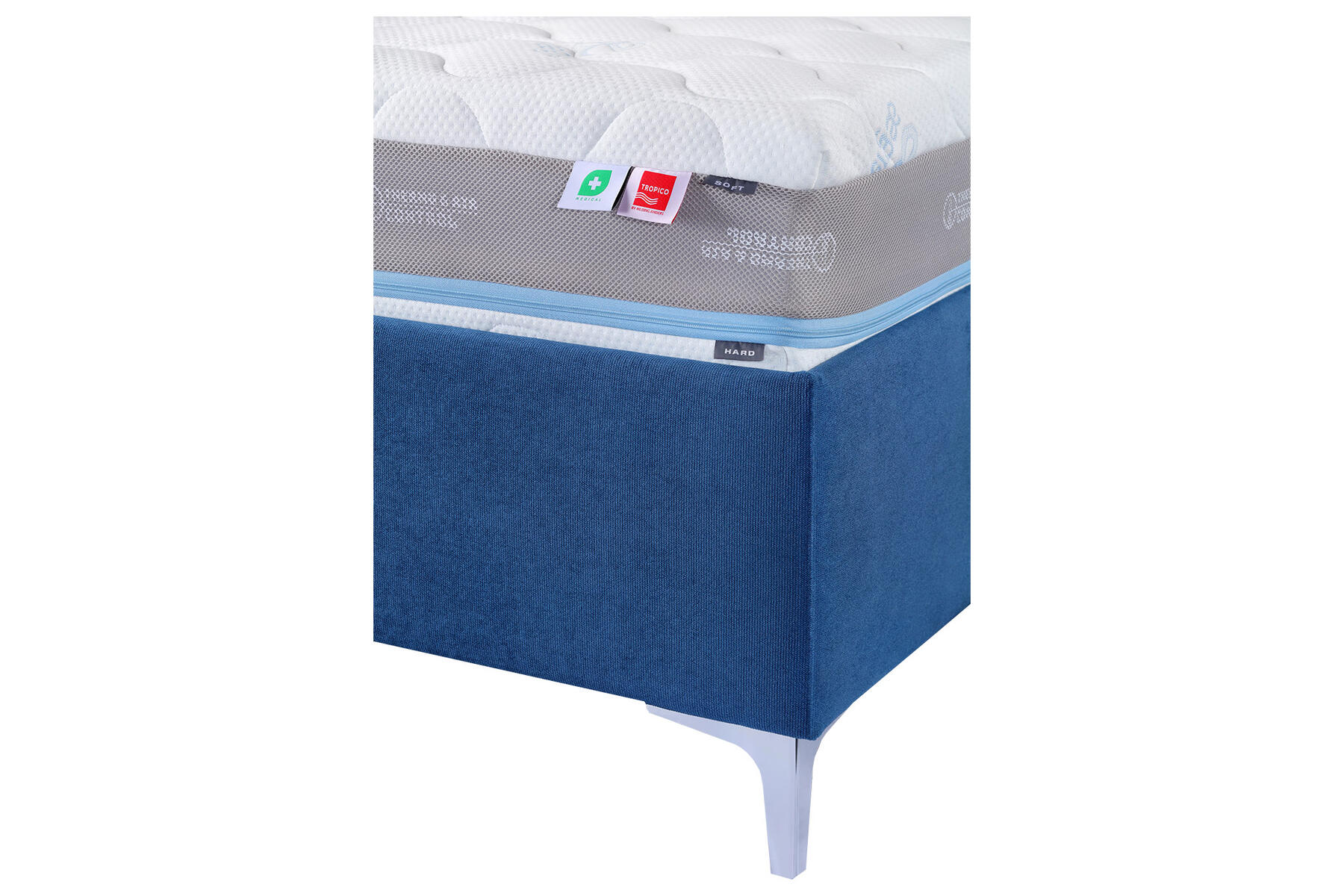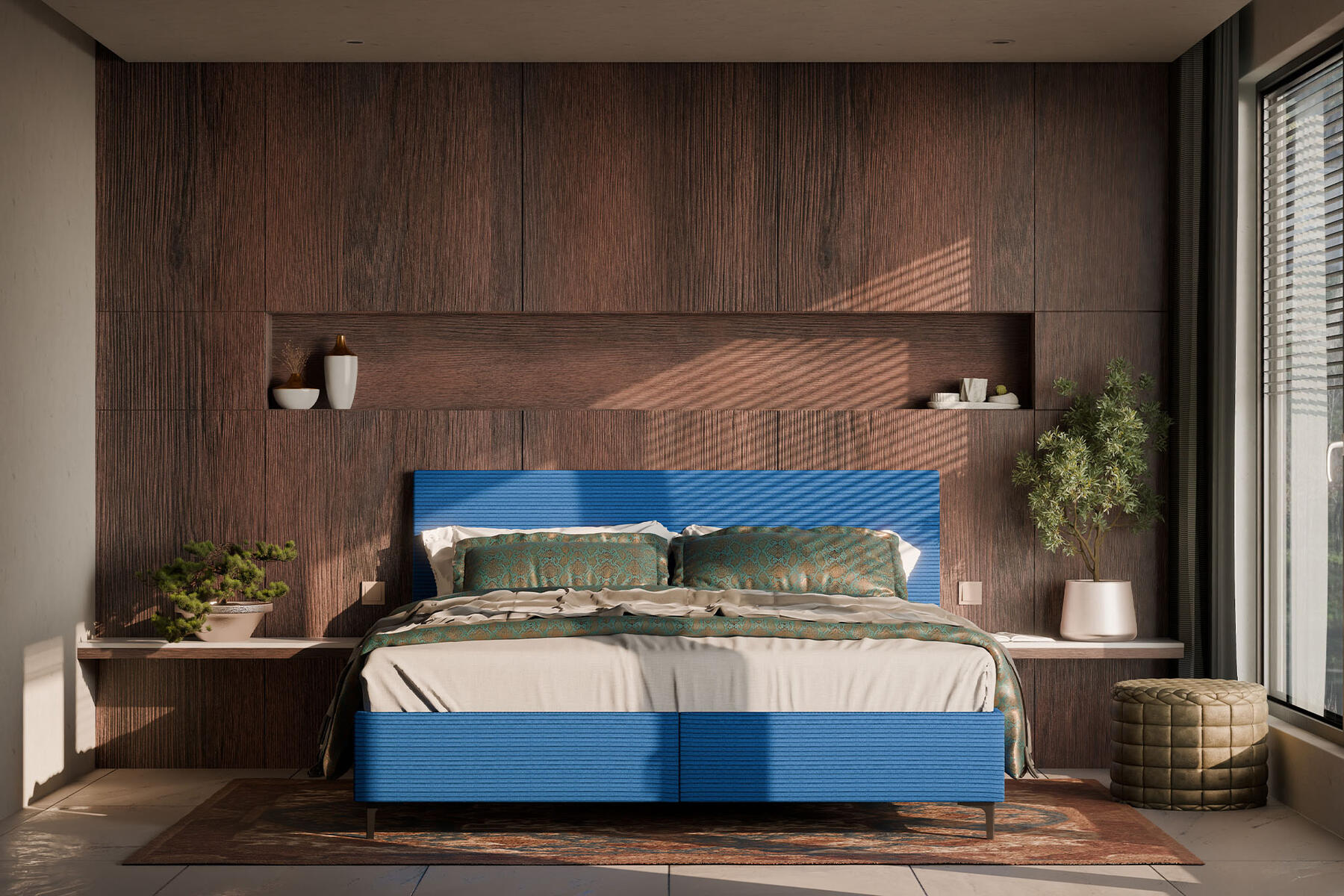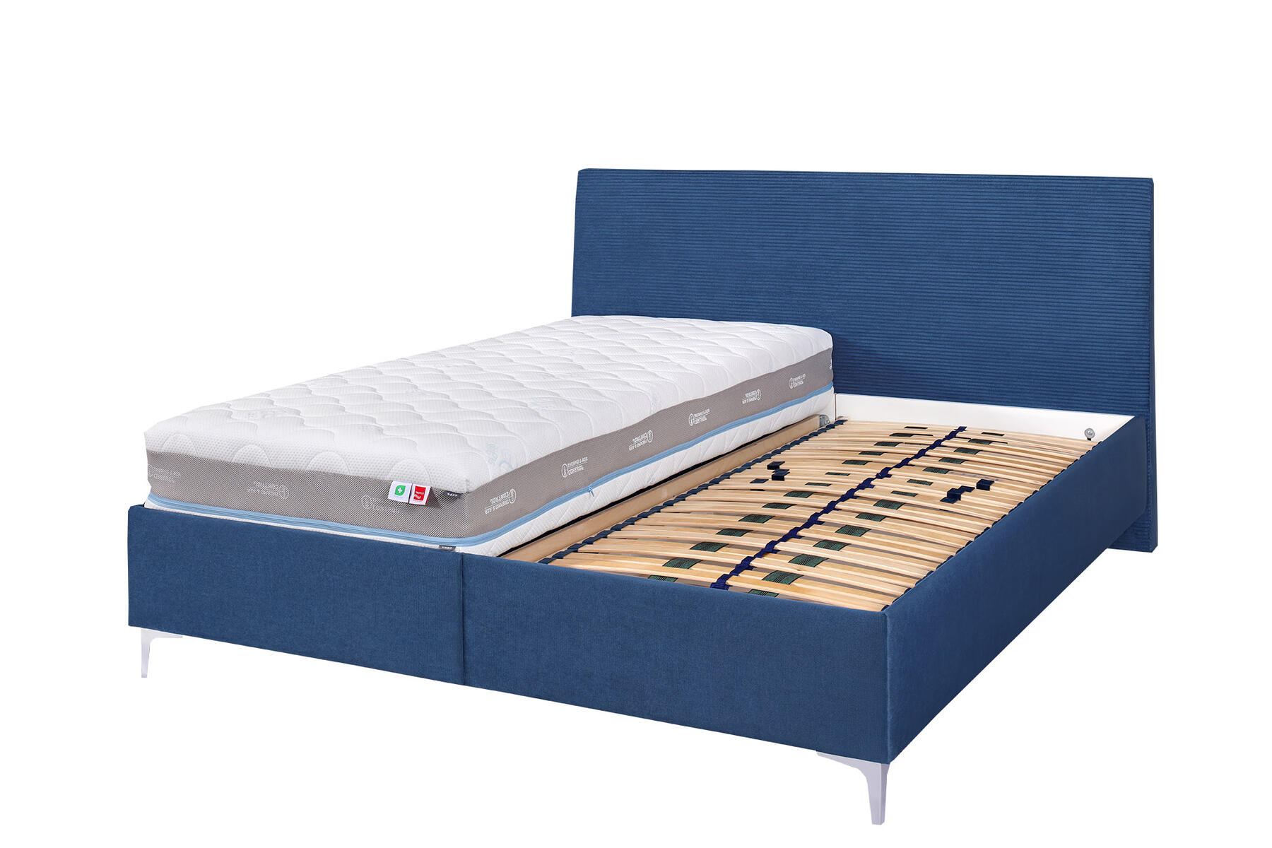 Postel je vhodná pro použití s libovolnými matracemi. Výška matrace pak určí konečnou výšku ložné plochy. Úložné prostory jsou snadno dostupné díky vyklápěcím mechanismům s plynovými vzpěrami. Pro přístup do úložných prostor jsou použity rošty s bočním výklopem. Vysoké nožičky, zajišťují, že postel není přímo na zemi a tím poskytují správné proudění vzduchu pod postelí, takže nebudete vystaveni průvanu. Volitelné čelo a potahovou látku si vyberete dle svého vkusu či designu Vaší ložnice. Postel nabízí vybavení dvou designových nožiček a dvou kovových nožiček, které slouží jako spojnice boxů na vnitřní straně (z vnějšího pohledu nejsou viditelné). Boxy jsou pevně přišroubovány a nedovolí jakýkoli posun. Postel s čalouněnou základnou ve tvaru boxu je pevná a má odvětrávané úložné prostory. Je vhodná pro použití s jakýmikoli matracemi, přičemž výška matrace určuje konečnou výšku ložné plochy. Úložné prostory jsou snadno přístupné díky vyklápěcím mechanismům s plynovými vzpěrami a bočnímu výklopu roštů. Vysoké nožičky zajišťují, že postel není přímo na zemi, což umožňuje správné proudění vzduchu pod postelí a chrání vás před průvanem. Čelo postele a potahovou látku si můžete vybrat podle svého vkusu nebo designu vaší ložnice. Postel je vybavena dvěma designovými nožičkami a dvěma kovovými nožičkami, které slouží jako spojnice boxů na vnitřní straně a nejsou viditelné z vnějšího pohledu. Boxy jsou pevně přišroubovány, což zabraňuje jakémukoli posunu.
