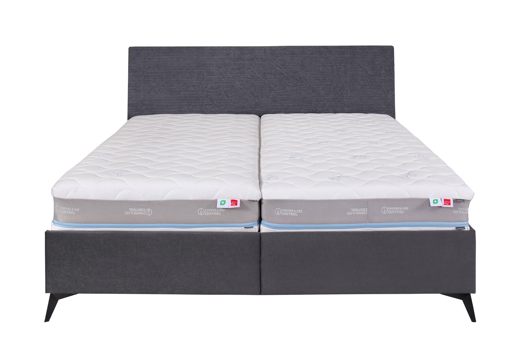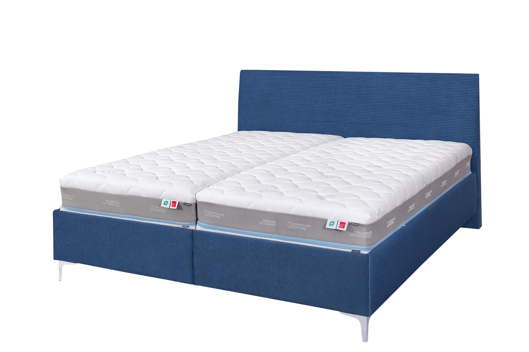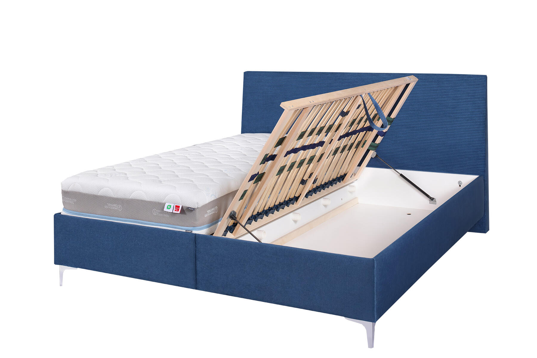 Čalouněná základna postele je ve tvaru boxu, pevná a vybavena o úložné prostory, které jsou odvětrávané.