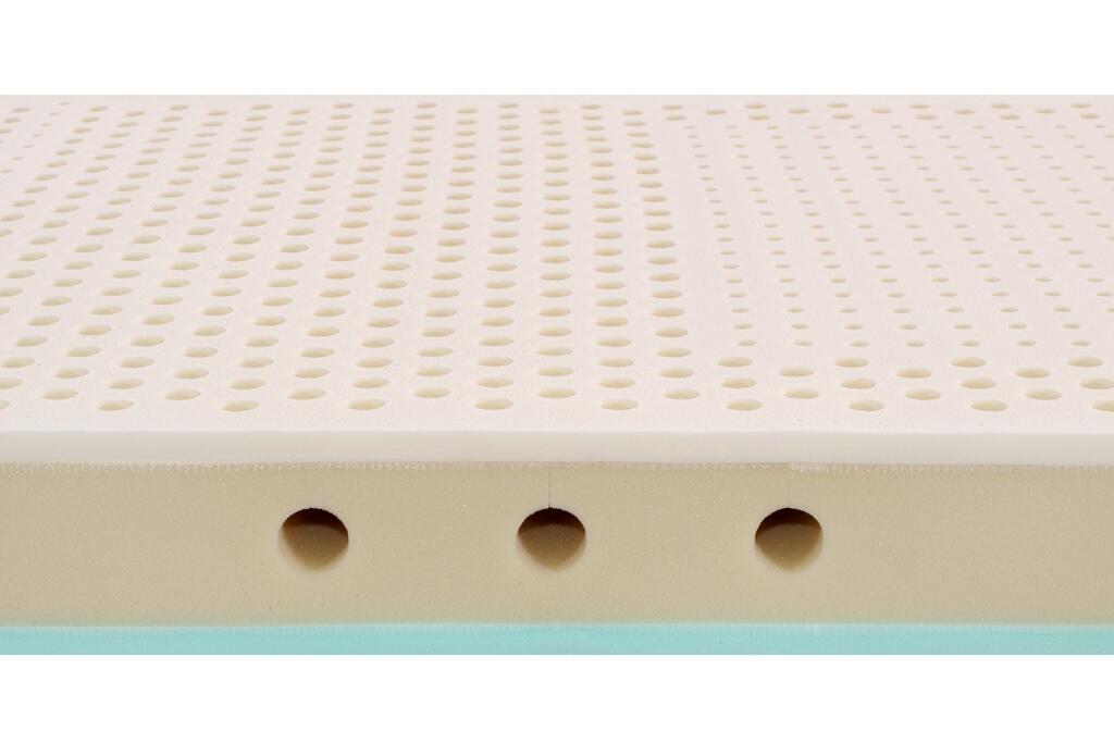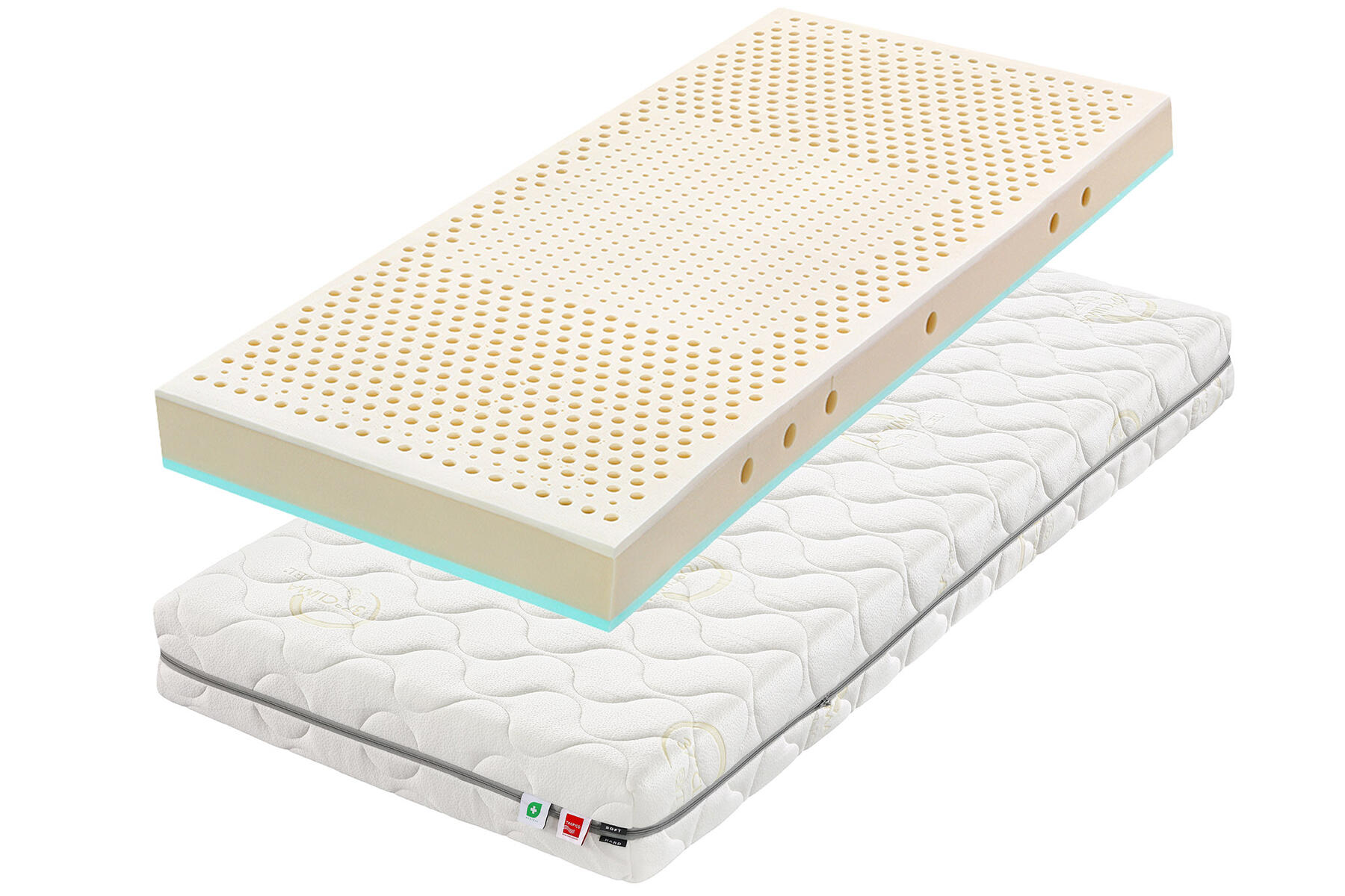 LATEX: Pružný, odolný, s podílem přírodních surovin a vysokou objemovou hmotností 60 kg/m3 . Pohodlí, vzdušnost, vynikající ortopedické vlastnosti. Měkčí strana.