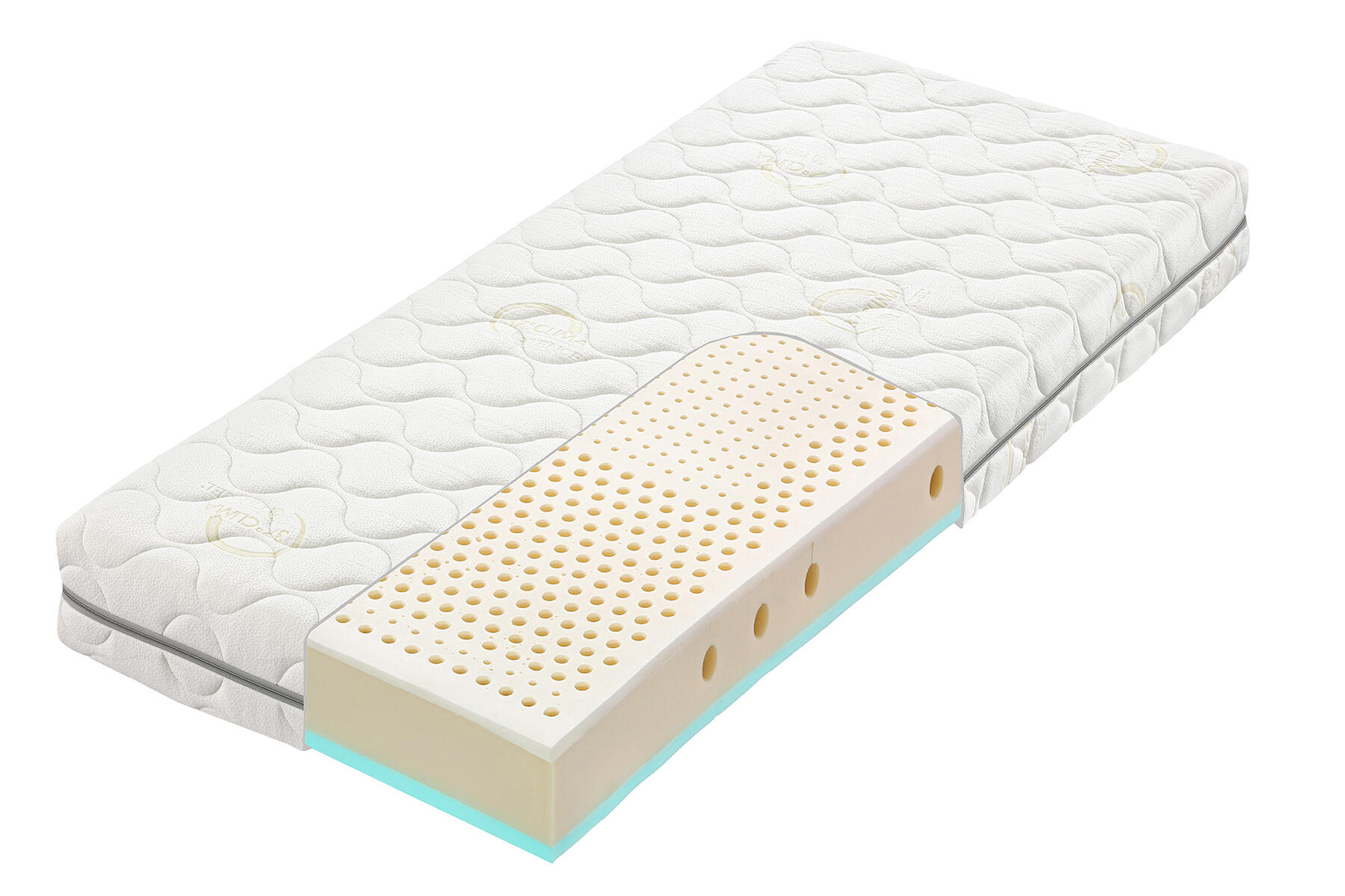 Matrace pro malé i velké, královna dětských pokojů. Se vzdušným latexem, pružnou studenou pěnou a prošívaným potahem pratelným na vyvářku. Rozdílná tuhost stran. Ortopedická, vzdušná a zónová. Odolná dětskému hopsání. Vyrobeno v Krkonoších.