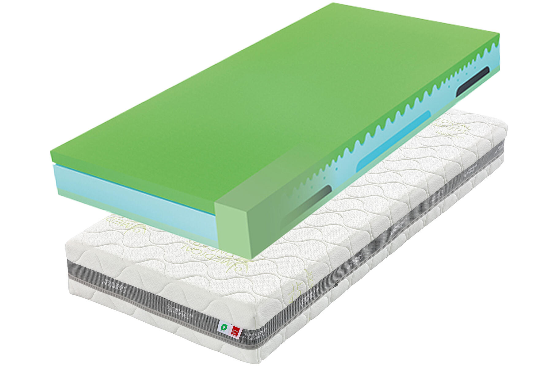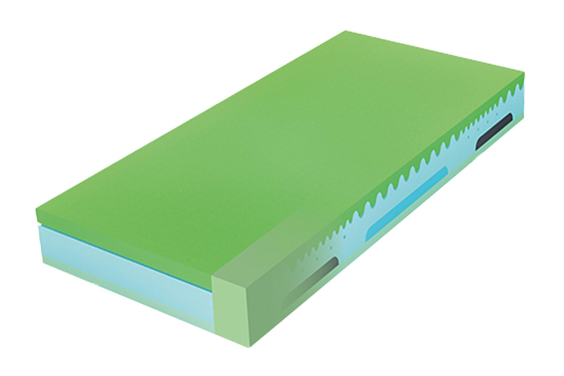 - Hybridní pěna (strana soft) Spojuje výhody studené pěny (vzdušnost, pružnost), latexu, (termoregulace) a paměťové pěny (přizpůsobivost). Profilace s funkcí zvýšené schopnosti odvádět z jádra vzdušnou vlhkost.